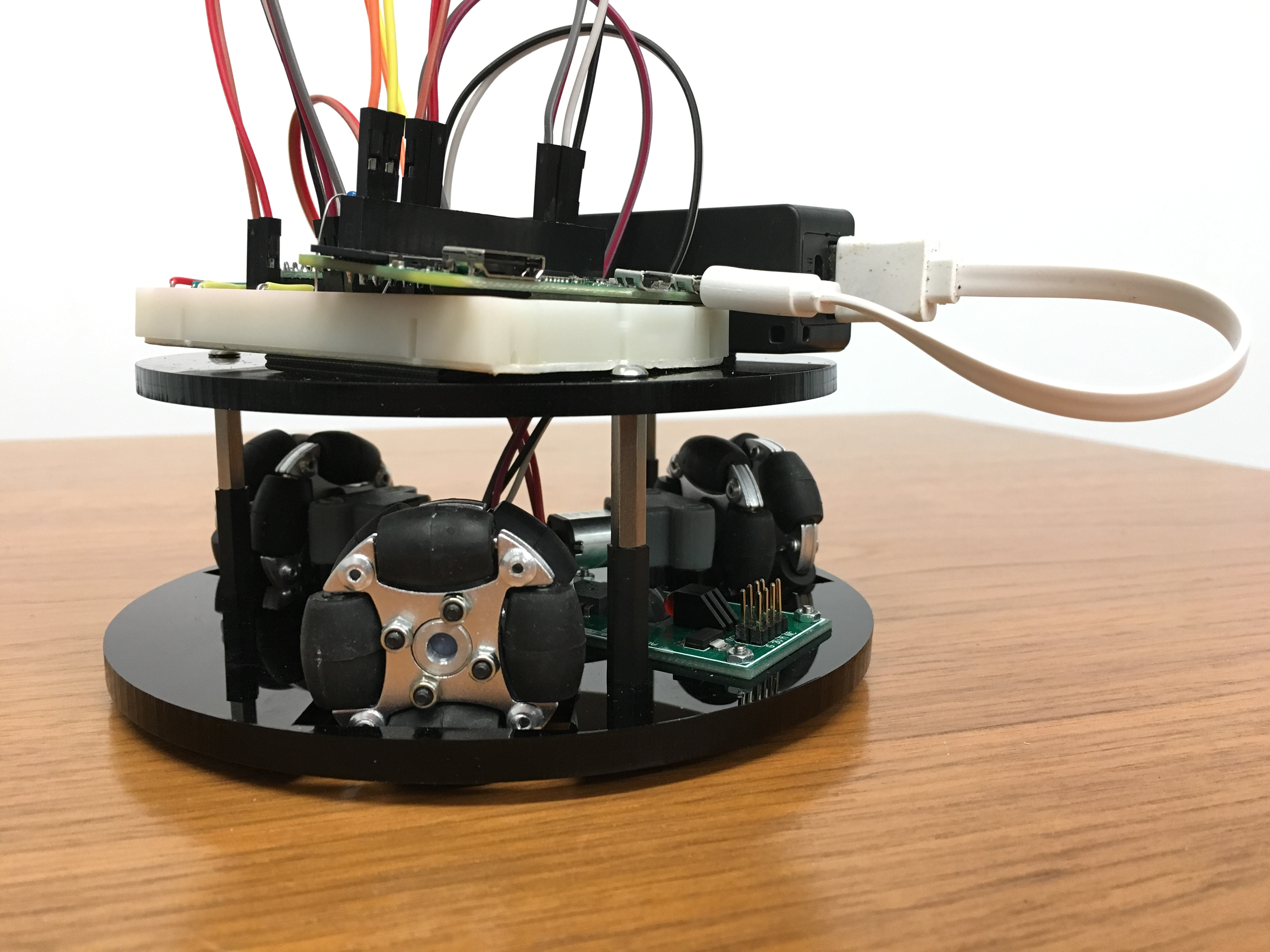 Yolo is a robot whose design elements are being studied to determine whether robots can increase the development of creativity in children. In a story formation exercise intended for children, Yolo acts as the guiding character in a group of movable toys. It responds to a child’s manipulation with minimalistic behaviors that spark a social connection while leaving room for imagination and creativity. This robot was created in Guy Hoffman's Human-Robot Collaboration and Companionship Lab at Cornell University and has been accepted to the 2018 ACM/IEEE International Conference on Human-Robot Interaction Student Design Competition. This robot was given a full redesign during the Fall 2017 semester. I was responsible for designing the base platform, which included a holonomic drive system, Raspberry Pi Zero W, power system, motion sensing, and support structure. I specified the motors and omni wheels and designed the base components that created the foundation for the robot. This was manufactured with 3D printing and laser cutting. I then created 5 unique behaviors for the robot by controlling the motors via a Raspberry Pi Zero W (programmed in Python) and motor drivers. To detect how the robot is manipulated by children, I integrated an optical sensor into the base design and obtained data feedback via USB connection and Python functions. To power the robot’s elements, I designed, built, and tested a rechargeable Li-Po battery system.